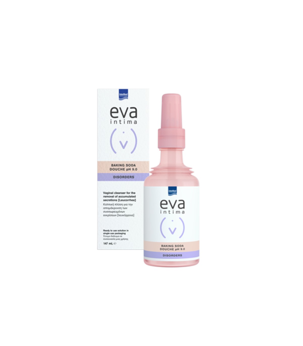 Το Eva Intima Baking Soda Douche είναι ένα ειδικά σχεδιασμένο διάλυμα για τον καθαρισμό του κόλπου και την αποτελεσματική διαλυτοποίηση και απομάκρυνση των φυσιολογικών ή παθολογικών υπερεκκρίσεων ιδίως πρωτεϊνικής φύσεως που συσσωρεύονται σε αυτόν. Προσφέρει αποτελεσματική βοήθεια για σωστή θεραπευτική εφαρμογή τοπικών σκευασμάτων σε περιπτώσεις κολπίτιδων μυκητιασικής αιτιολογίας οι οποίες συνοδεύονται από υπερεκκρίσεις καθώς καθαρίζει άμεσα τον κολπικό βλεννογόνο αφήνοντας μία καθαρή επιφάνεια για να δράσει αποτελεσματικά η επόμενη ενδοκολπική αγωγή. Επιπλέον χάρη στο ειδικό ρύγχος εφαρμογής, ο καθαρισμός του κόλπου γίνεται εύκολα και με ασφάλεια για τη χρήστη.