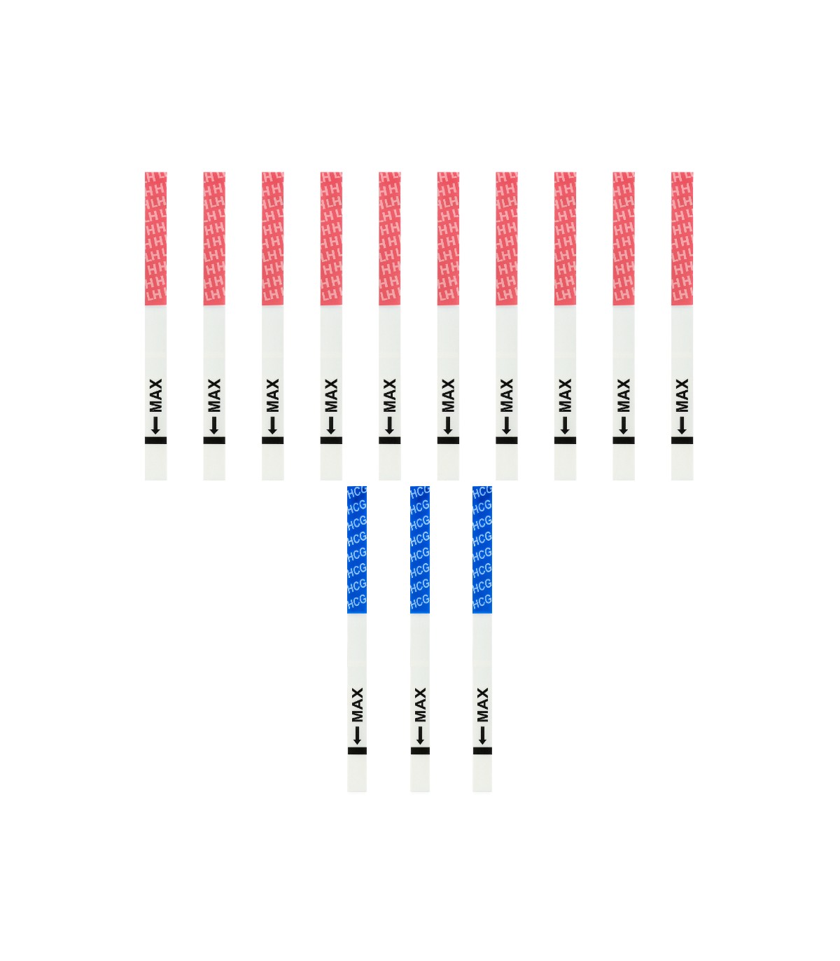 10 τεστ ωορρηξίας (LH) HomeTest και 3 τεστ εγκυμοσύνης (hCG) HomeTest σε ταινίες.