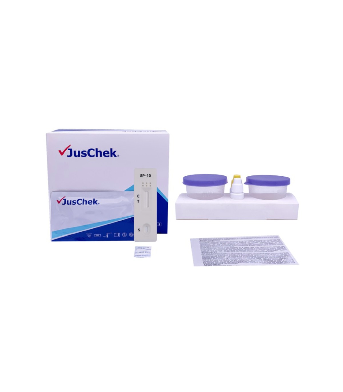 The JusChek SP-10 Male Fertility Rapid Test is a chromatographic immunoassay for the qualitative detection of SP-10 acrosomal protein found in semen.