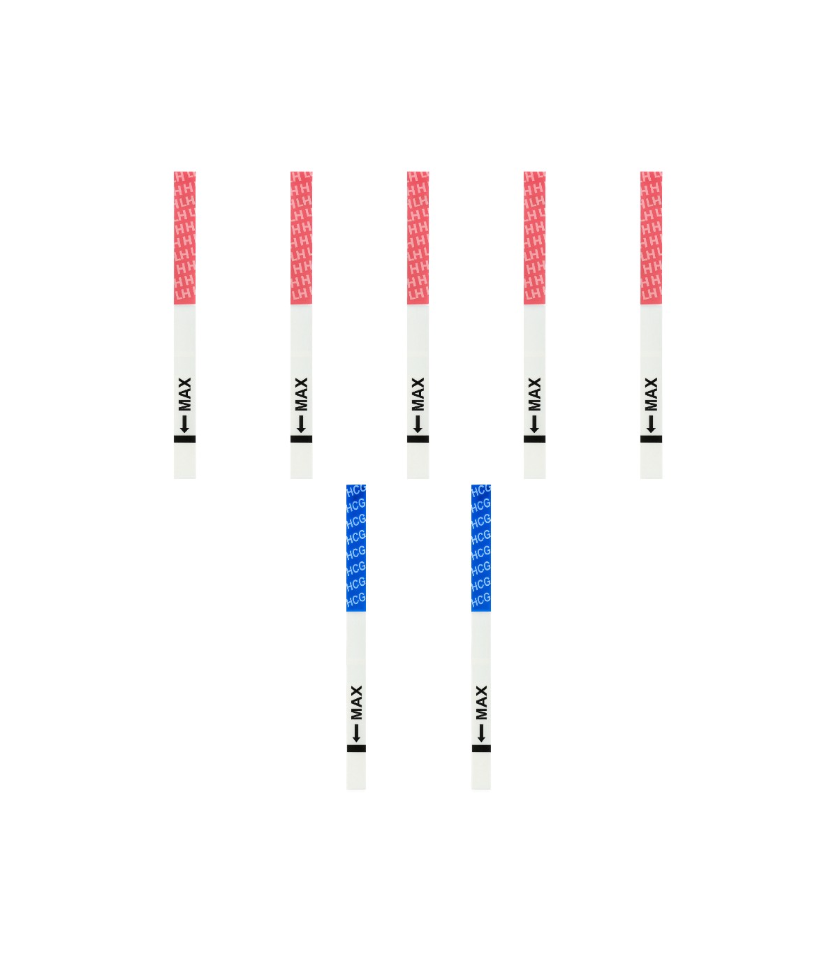 5 LH ovulation and 2 hCG pregnancy HomeTest test strips.